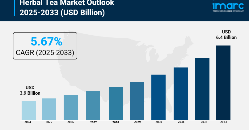 IMARC Group, a leading market research company, has recently releases a report titled “Herbal Tea Market Report by Type (Chamomile, Peppermint, Lemongrass, Ginger, Hibiscus, Turmeric, and Others), Raw Material (Green Tea, Black Tea, Yellow Tea, and Others), Packaging (Loose Tea, Tea Bags, Plastic Containers, Aluminium Tins, and Others), Distribution Channel (Supermarkets and Hypermarkets, Convenience Stores, Specialty Stores, Online, and Others), and Region 2025-2033.” The study provides a detailed analysis of the industry, including the global herbal tea market size, share, trends, and growth forecast. The report also includes competitor and regional analysis and highlights the latest advancements in the market.