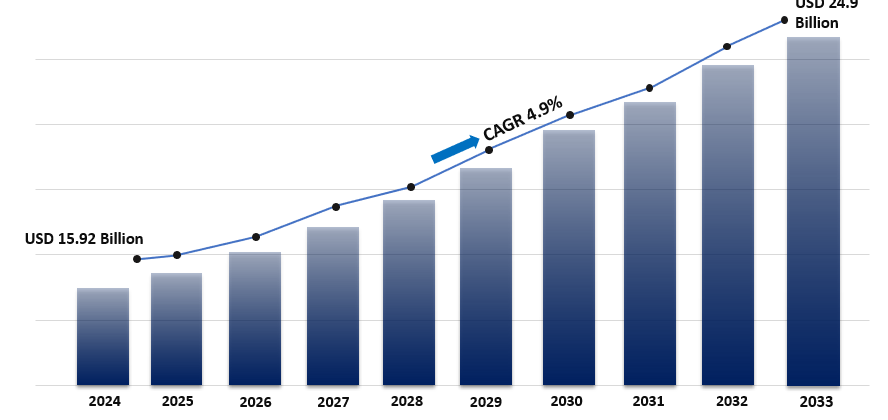 The global motion control market size reached US$ 15.92 Billion in 2024. Looking forward, IMARC Group expects the market to reach US$ 24.9 Billion by 2033, exhibiting a growth rate (CAGR) of 4.9% during 2025-2033.