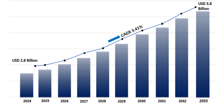 Pizza Boxes Market Forecast (2025–2033): The pizza boxes market size is expected to reach USD 3.8 Billion by 2033, growing at a CAGR of 3.41%.