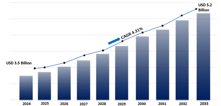 The global wine packaging market size reached USD 3.5 Billion in 2024. Looking forward, IMARC Group expects the market to reach USD 5.2 Billion by 2033, exhibiting a growth rate (CAGR) of 4.31% during 2025-2033.