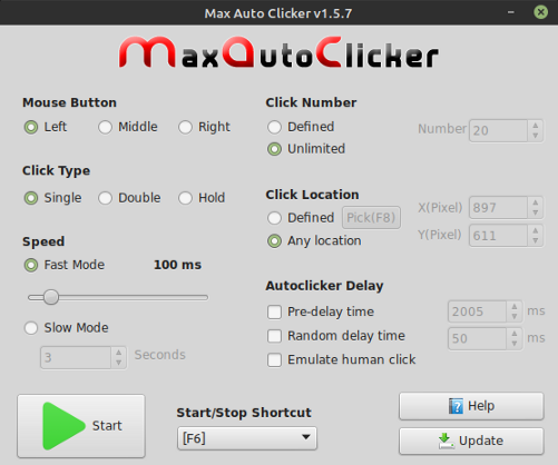 This Auto Clicker for Linux will help you of repeated clicks in your games and is completely free and Open Source.