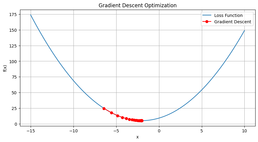 def gradient_descent(start_at=np.random.uniform(-10, 10),