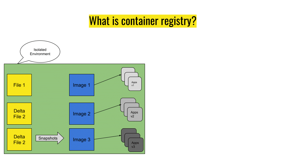 Now that we understand containers and how they work, let's discuss container images. A container image is a file that contains all the necessary information needed to run an application inside of a container, including code, configuration files, system libraries, and even environment variables. Think of it as a snapshot of an application's state at a given time. This snapshot can then be used to easily create and deploy exact copies of the application in other environments without needing to manually re-install or configure each instance. Container images can also be updated and shared with others—making it an excellent way for developers to distribute their applications and updates across different systems quickly.