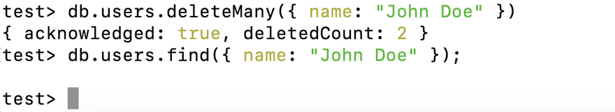 db.users.deleteMany({ name: "John Doe" })