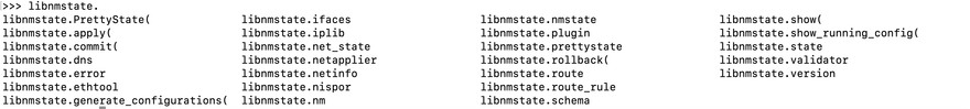 Once you import the library, you will have access to nmstate functions as shown below,