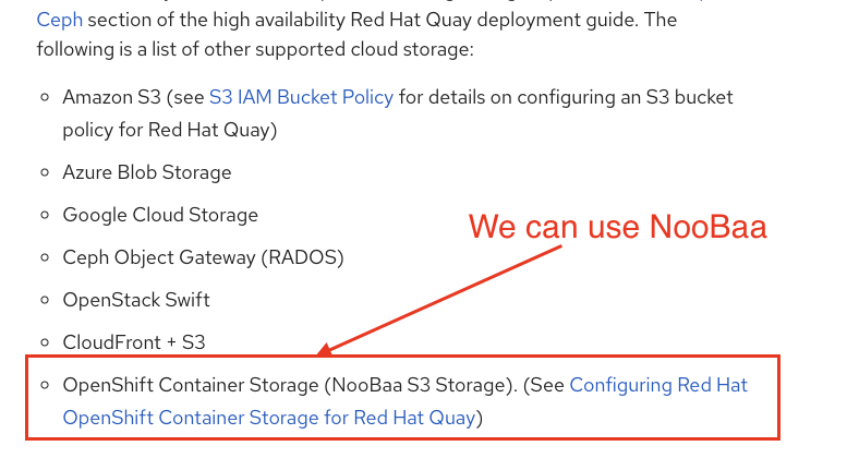 Warning ObjectStorageComponentDependencyError <invalid> (x16 over 2m26s) quayregistry-controller error checking for object storage support: unable to list object bucket claims: no matches for kind "ObjectBucketClaim" in version "objectbucket.io/v1alpha1"