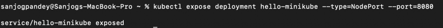 kubectl expose deployment hello-minikube --type=NodePort --port=8080