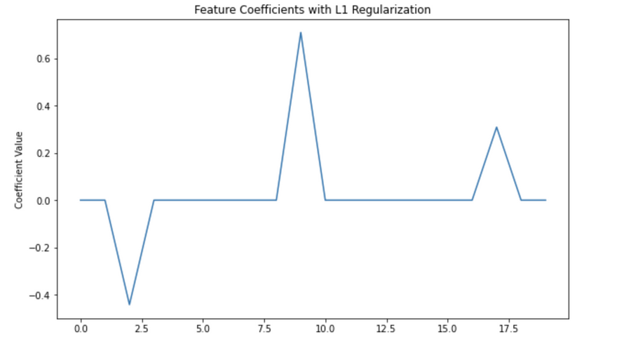 L1 regularization (Lasso regression): The penalty term is the absolute value of the magnitude of coefficients. This can result in some coefficients being reduced to zero, effectively removing the corresponding feature from the model.