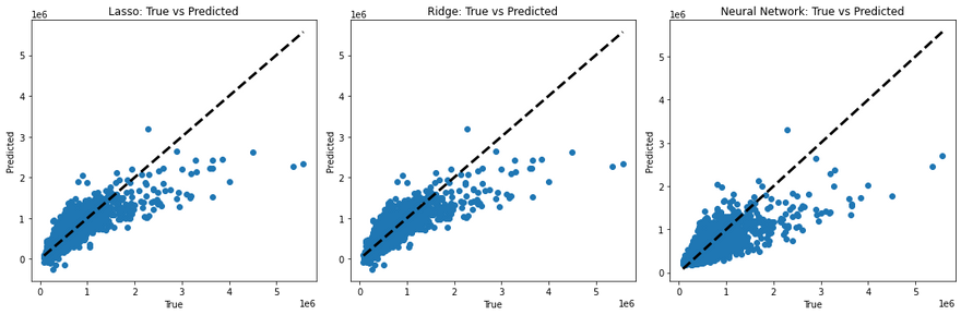 To visualize and compare the predictions made by these models, you can create plots of the true values versus the predicted values. For a perfect model, all points would lie on a straight line (since the true value would always equal the predicted value). Deviations from this line show the errors in prediction. Here I created a simple python function to demonstrate this.