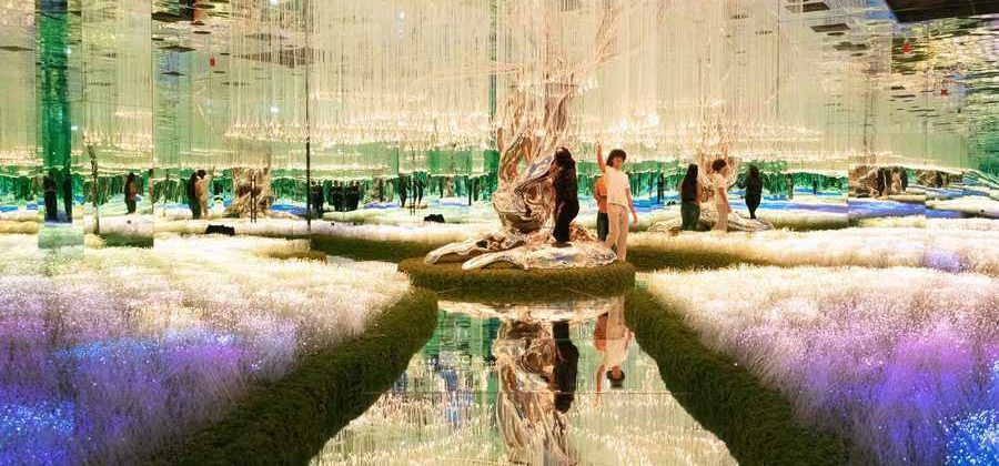 A mirror-based illusion room creating an endless tunnel of light.