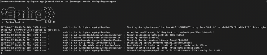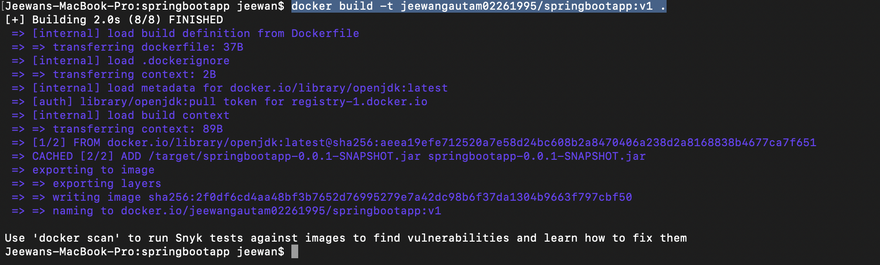 docker build -t jeewangautam02261995/springbootapp:v1 .