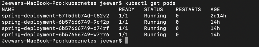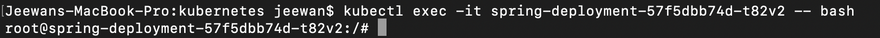 kubectl exec -it spring-deployment-57f5dbb74d-t82v2 -- bash
