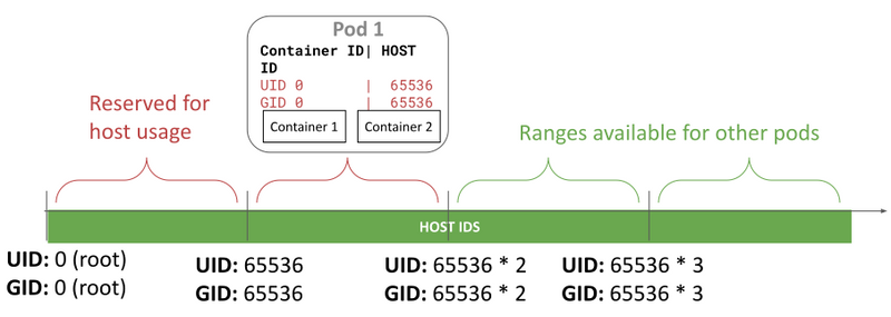 Note: Linux user namespaces are a different concept from Kubernetes namespaces. The former is a Linux kernel feature; the latter is a Kubernetes feature.