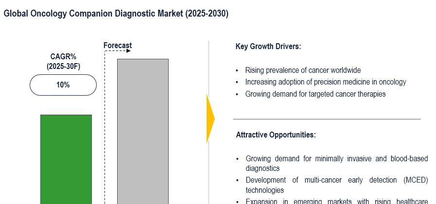 The oncology companion diagnostic market is projected to grow at a CAGR of ~10% over the forecast period. The market is driven by the growing adoption of precision medicine, rising cancer incidence, and advancements in molecular diagnostics, including next-generation sequencing (NGS) and liquid biopsy. Regulatory support for personalized medicine and increasing collaborations between pharmaceutical and diagnostic firms further accelerate growth.