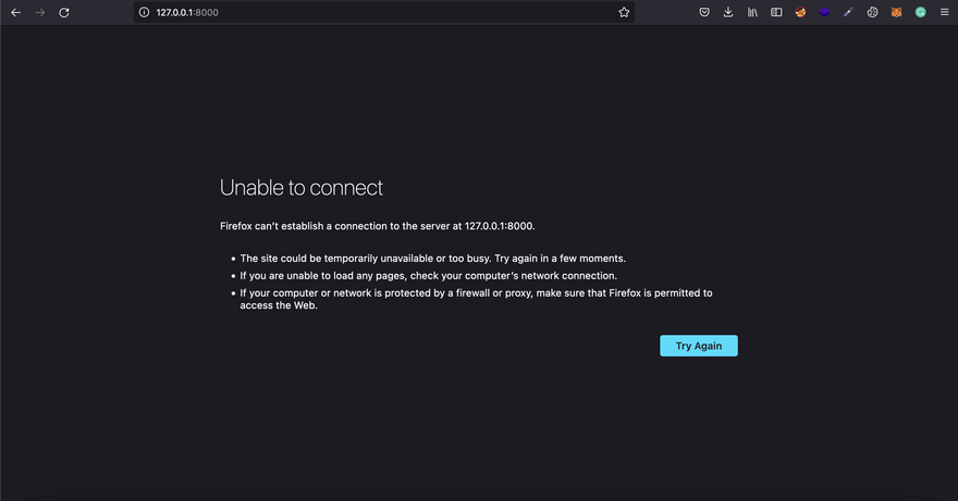 Now, let's try visiting our python app. we hosted it on 127.0.0.1:8000.