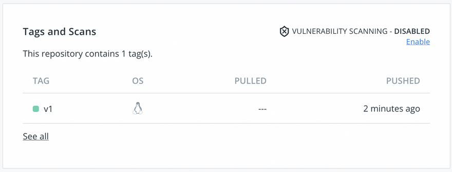 4) Now, if we visit our dockerhub repo page, we can see that our image has been pushed.