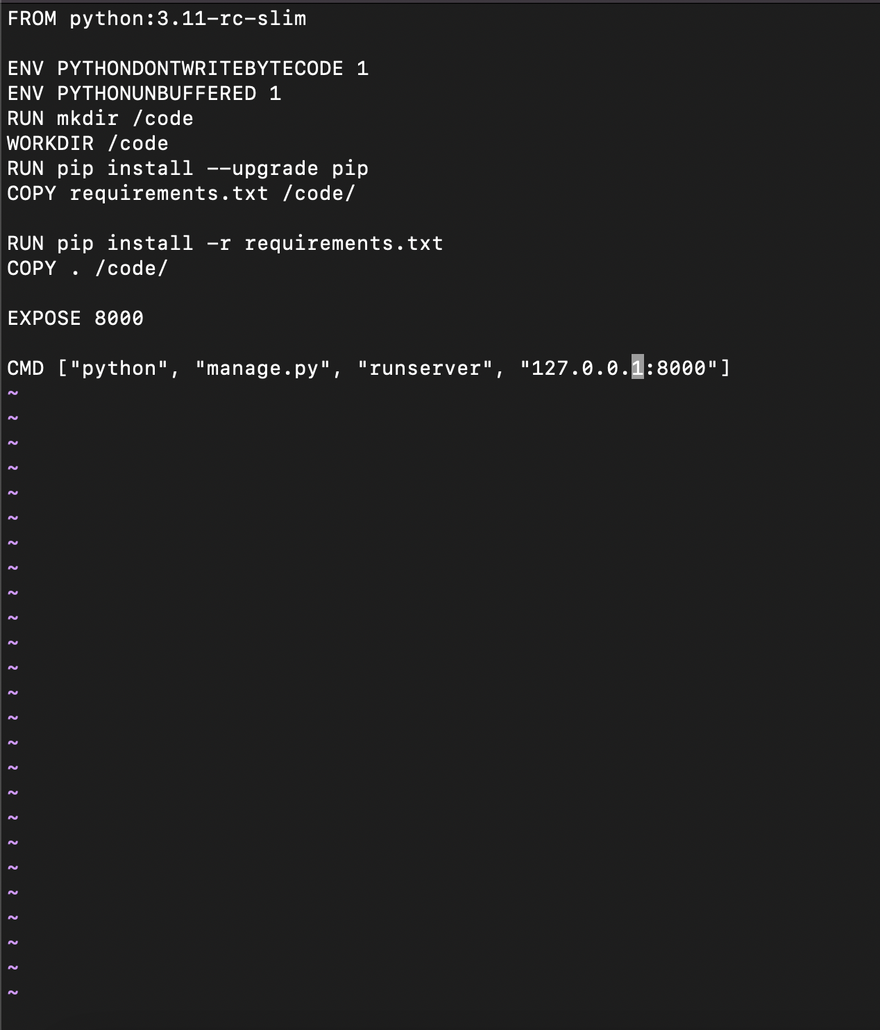 CMD ["python", "manage.py", "runserver", "127.0.0.1:8000"]