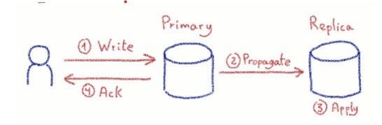 The last one is synchronous replication. The name is self-explanatory, but let us walk through how it works. In this mode, write queries are only acknowledged when changes have been propagated AND applied to the replicas. Obviously, this is the most secure way to replicate data: no data or progress is lost if there is a primary node failure.