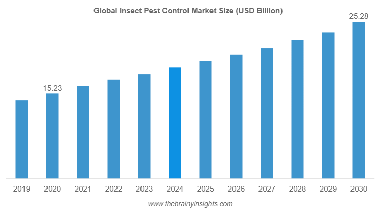 The global insect pest control market is projected to reach USD 25.28 billion by 2030, growing at a compound annual growth rate (CAGR) of 30% from 2021 to 2030.