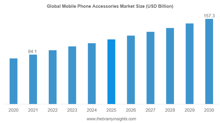 The global mobile phone accessories market is projected to grow to USD 157.3 billion by 2030, expanding at a compound annual growth rate (CAGR) of 7.20% between 2022 and 2030.