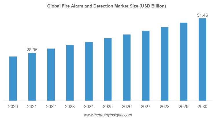 The global fire alarm and detection market is projected to reach USD 51.46 billion by 2030, growing at a CAGR of 6.6% from 2022 to 2030. This growth is fueled by the rising need for advanced fire safety systems in residential, commercial, and industrial settings.