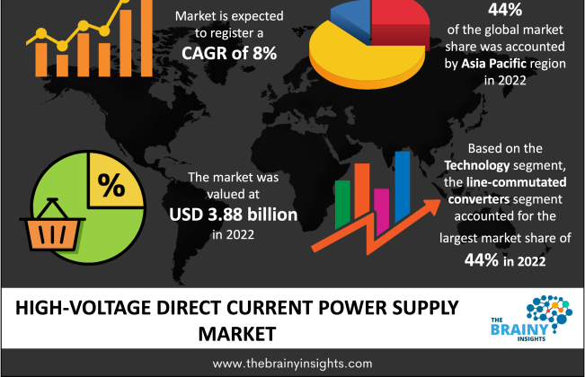 The global high-voltage direct current (HVDC) power supply market is projected to grow from USD 3.88 billion in 2022 to USD 8.37 billion by 2032, registering a compound annual growth rate (CAGR) of 8% during the forecast period from 2023 to 2032.
